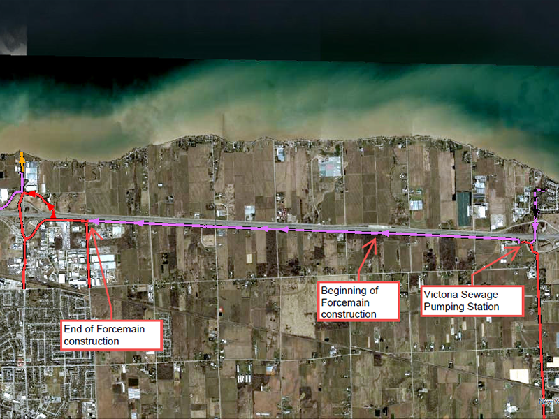 Construction will include a 3.8 kilometre long forcemain replacement along the QEW South Service Road. This will run from near Maple Grove Road to Bartlett Road.