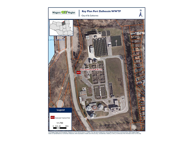 The Port Dalhousie Wastewater Treatment Plan is owned and operated by Niagara Region, located at 40 Lighthouse Rd., in St. Catharines (north of Lakeshore Road), servicing St. Catharines and Thorold.